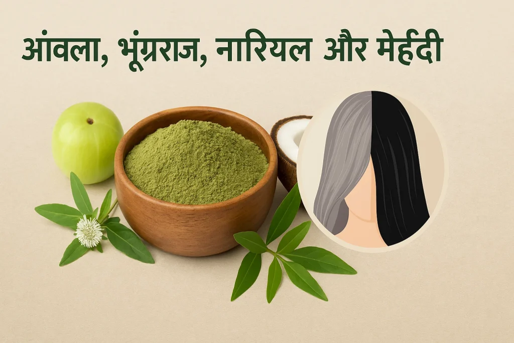इस ब्लॉग में हम ऐसे आयुर्वेद में बताई गई जड़ी-बूटियाँ , आयुर्वेदिक औषधियां और घरेलू नुस्खों के बारे में बात करेंगे जो न केवल सफेद बालों को रोकते हैं, प्राकृतिक काला रंग और चमक प्रदान करते हैं, बल्कि जड़ों को मज़बूत भी बनाते हैं।